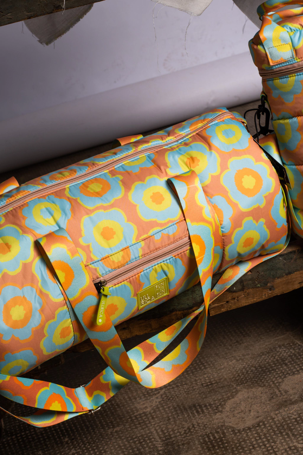 Práctico bolso tubular ,exterior de pongee impermeable e interior acolchado en guata de alta densidad, diseños exclusivos de la marca. Con amplia capacidad para transportar, 3 bolisllos exteriores, dos en sus extremos y otro al frente. Manijas cortas reforzadas para llevar al cuerpo y correa tipo morral regulable, transportalo como más te guste!