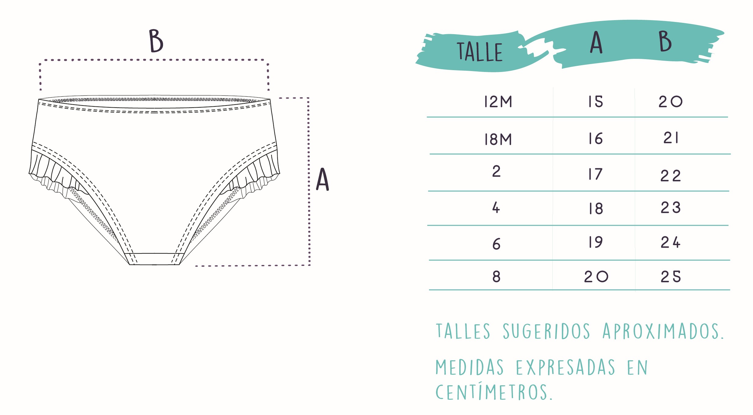 IMPORTANTE: Te recomendamos que para elegir el talle tomes en cuenta las medidas de la tabla que se encuentra a continuación y no las edades de referencia, ya que la edad es a nivel general y depende mucho de la contextura de la nena o del nene. Podés medir un traje de baño que tengas y le quede bien y compararlo con nuestras medidas.
