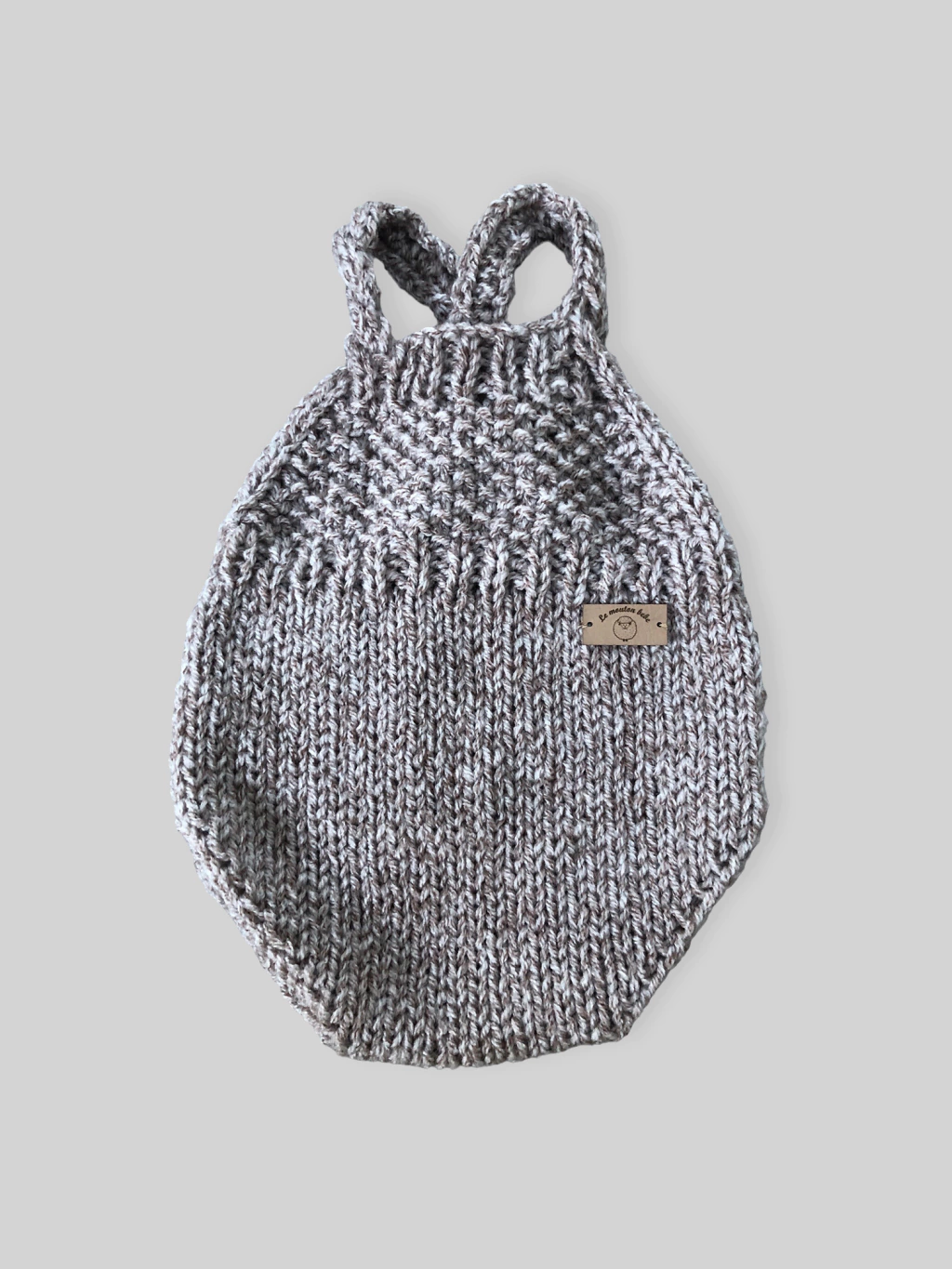 Bombachón tejido a mano talle 0, unisex para bebes/as de 0 a 3 meses. Color beige melange.