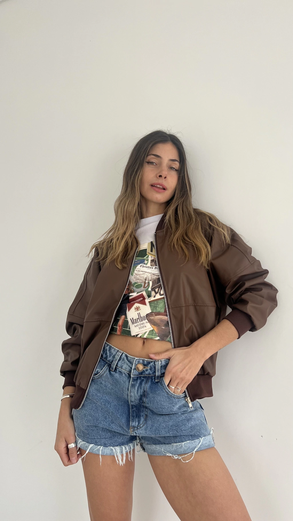 Bomber fina de ecocuero con cierre. puños en las mangas