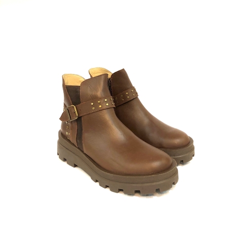 Botín de cuero liso con detalle de tachas metálicas, elástico y cierre lateral interno. Altura: 5cm - Ideales para un look a la moda y relajado .