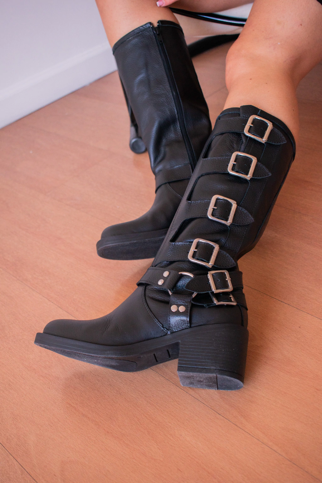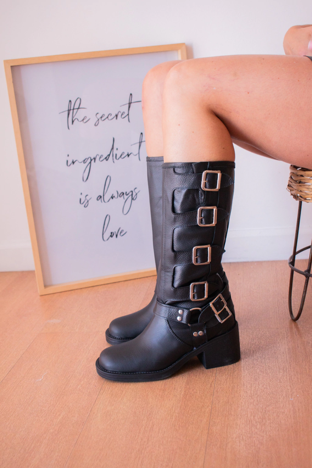 Bota confeccionada íntegramente en cuero vacuno (está forrada en cuero sintético). Tiene un calce suave y agradable y es ideal tanto para encarar tu rutina diaria como para esa ocasión súper especial donde querés ser la protagonista.La suela es de goma antideslizante. Posee un taco de 6cm. de alto. Su ajuste y abertura es mediante medio cierre en lateral interno. Se adapta a cualquier tipo de pie. Caña de 30cm aprox de largo.La hormaes cumplida, con lo cual debes elegir tu número habitual, si tenes dudas te recomiendo que uses la tabla de talles como referencia. ¿Cómo medis tu pie?Agarrá una hoja cualquiera. Parate normal, apoyá el peso del cuerpo sobre tus dos pies. Hace una marca en el talón y otra en la punta del dedo más largo (puede ser el dedo gordo o el de al lado). Agarrá una regla y medí las distancia entre las dos marcas. Chequea en la siguiente tabla, que talle es el que te corresponde ¿Y si estás justo entre dos talles? En el caso de este modelo, es una horma normal, te recomendamos que elijas el talle que llevas habitualmente. De todas formas, no te preocupes ¿Sabés qué? Cuando te llegue, podés probártela tranquila, y si te llegara a quedar chica o grande¡Podés cambiarla sin problemas!Para más información, chequea nuestra política de cambios y devoluciones.TalleCm.3523.5 cm3624 cm3724.5 cm3825 cm3925,5 cm4026.3 cm4127 cm