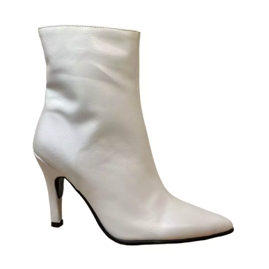 Botas Stiletto con taco fino y en punta, hace de este calzado la elegancia maxima.Confeccionados en PU, su diseño minimalista permite infinitas combinaciones.Taco aguja : 9 cmMaterial: pu blanco.Calce con cierreHorma angostaSuper livianas y comodas.El toque ideal para todos tus looks.