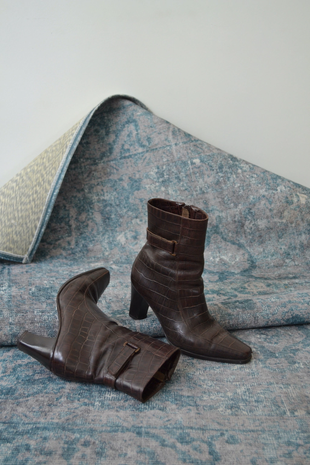 Botas de cueromarrones con efecto crocotalle: 39Taco 8cm