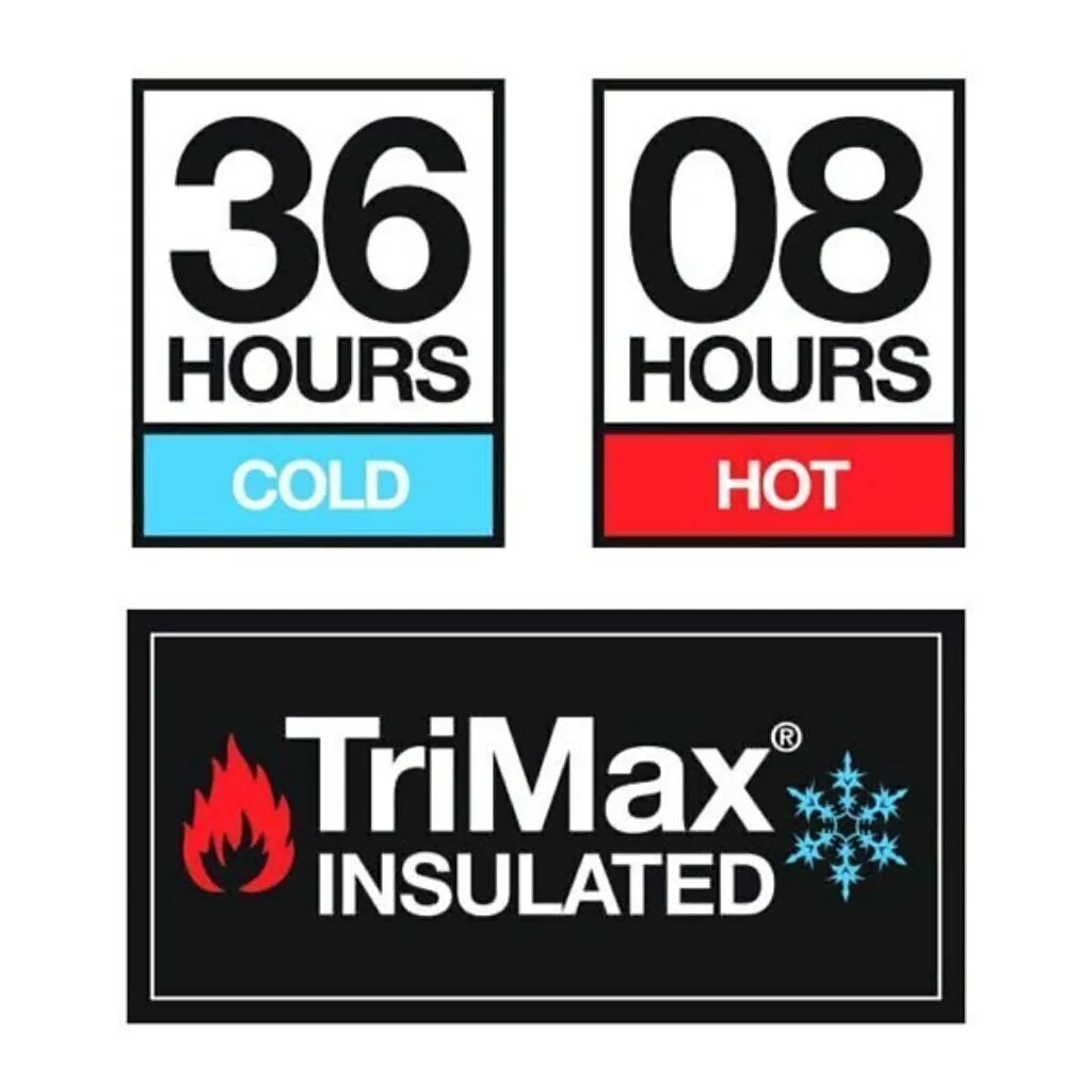 - Aislamiento triple TriMax® para mantener las bebidas frías hasta 36 horas y calientes hasta 8 horas