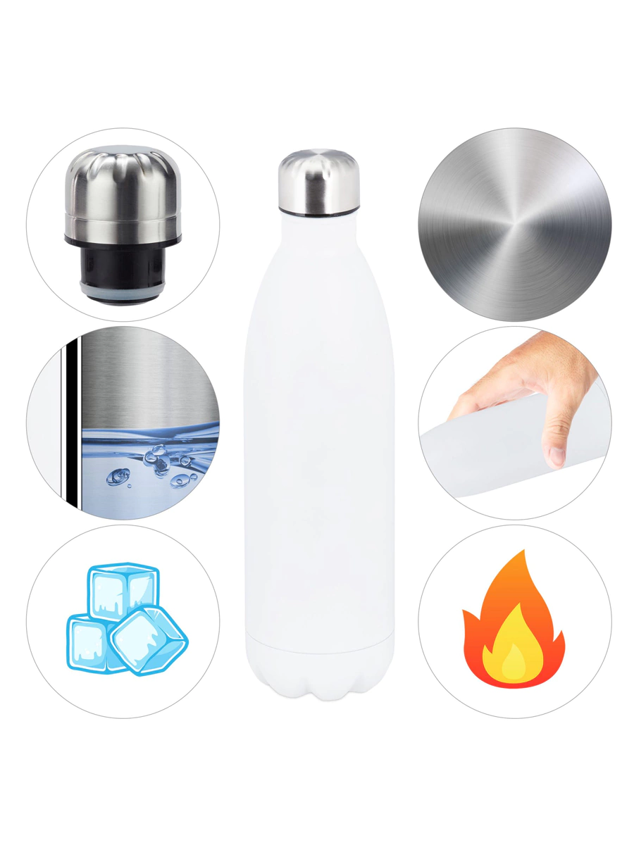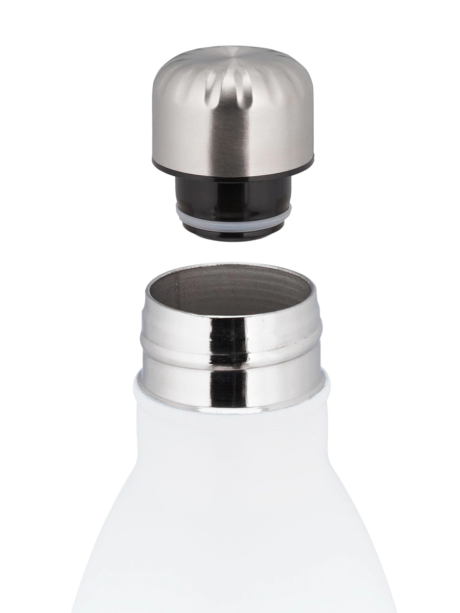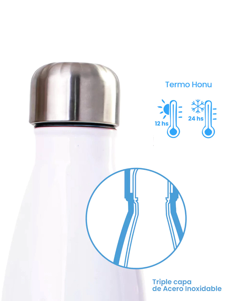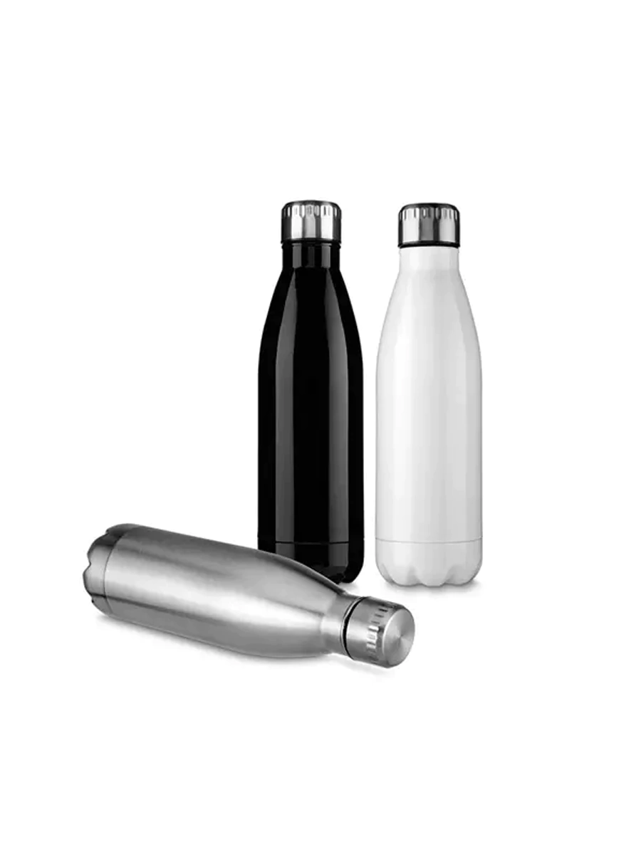 Compra minima 6 unidadesBotella de acero inoxidable, perfecta para viajes, gracias a su robustez y ligereza.Tapón de alta seguridad para evitar pérdidas de líquido.Ideal para mantener bebidas tanto calientes como frías gracias a su doble pared.Acabado brillante.Incluye caja individualNo aptas para el lavavajillasEl uso de bebidas carbonatadas, lácteos o zumos de frutas, pueden provocar oxidación en la botellaEl esmalte de las botellas se podría dañar en golpes y caídas