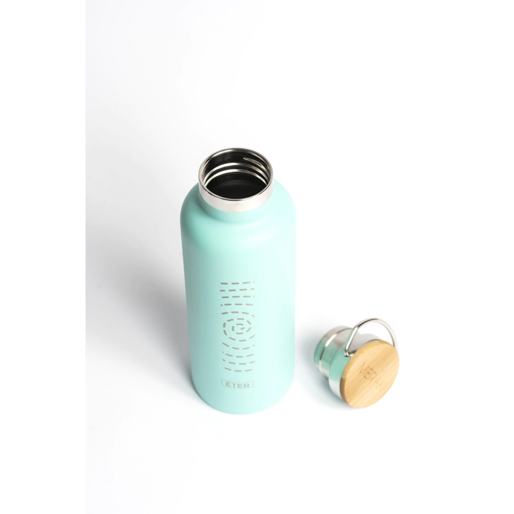 Botella Térmica 600 ml20 hs bebida fría10 hs bebida calienteDoble capa de acero inoxidable 304 (18/8)Diámetro Boca: 48,5 mmAncho: 73 mmAlto: 240 mmPeso: 340 gTapa: Rosca de acero con terminación en bambú