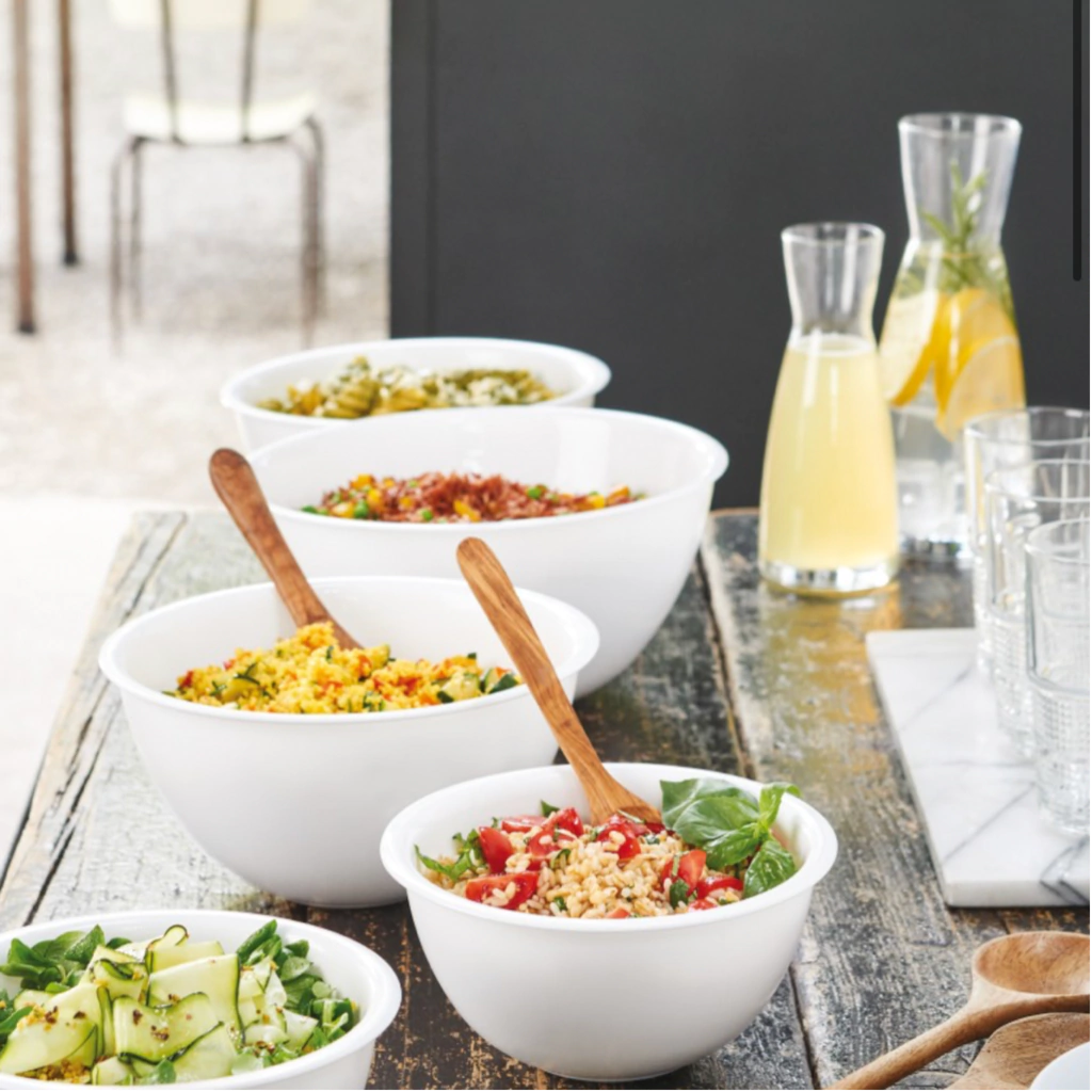 Ideal para servir ensaladas, platos fríos y calientes, platos principales, ensaladas de frutas y postres de cuchara; también se puede utilizar para mezclar ingredientes.