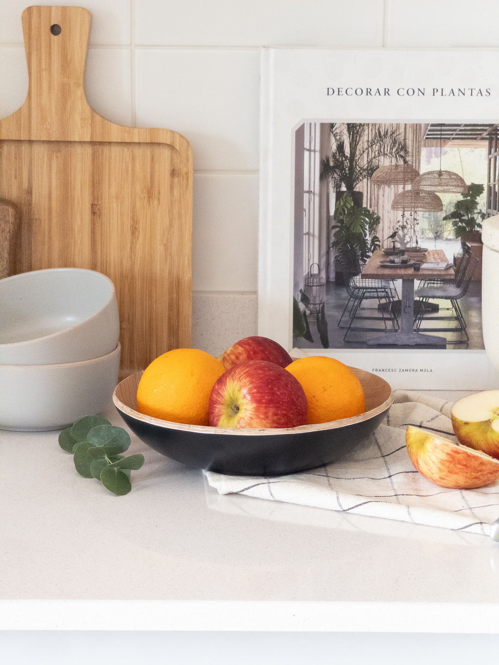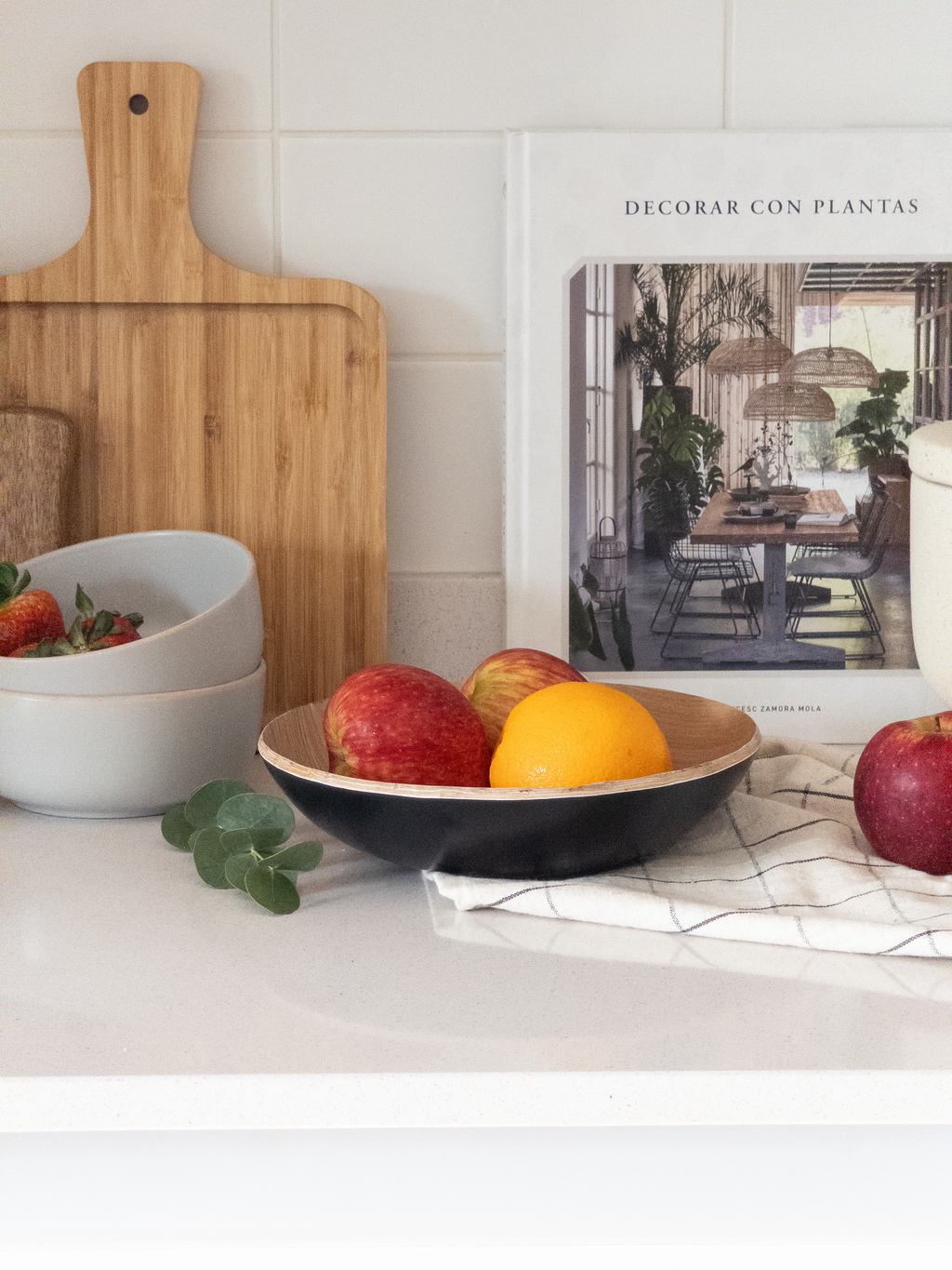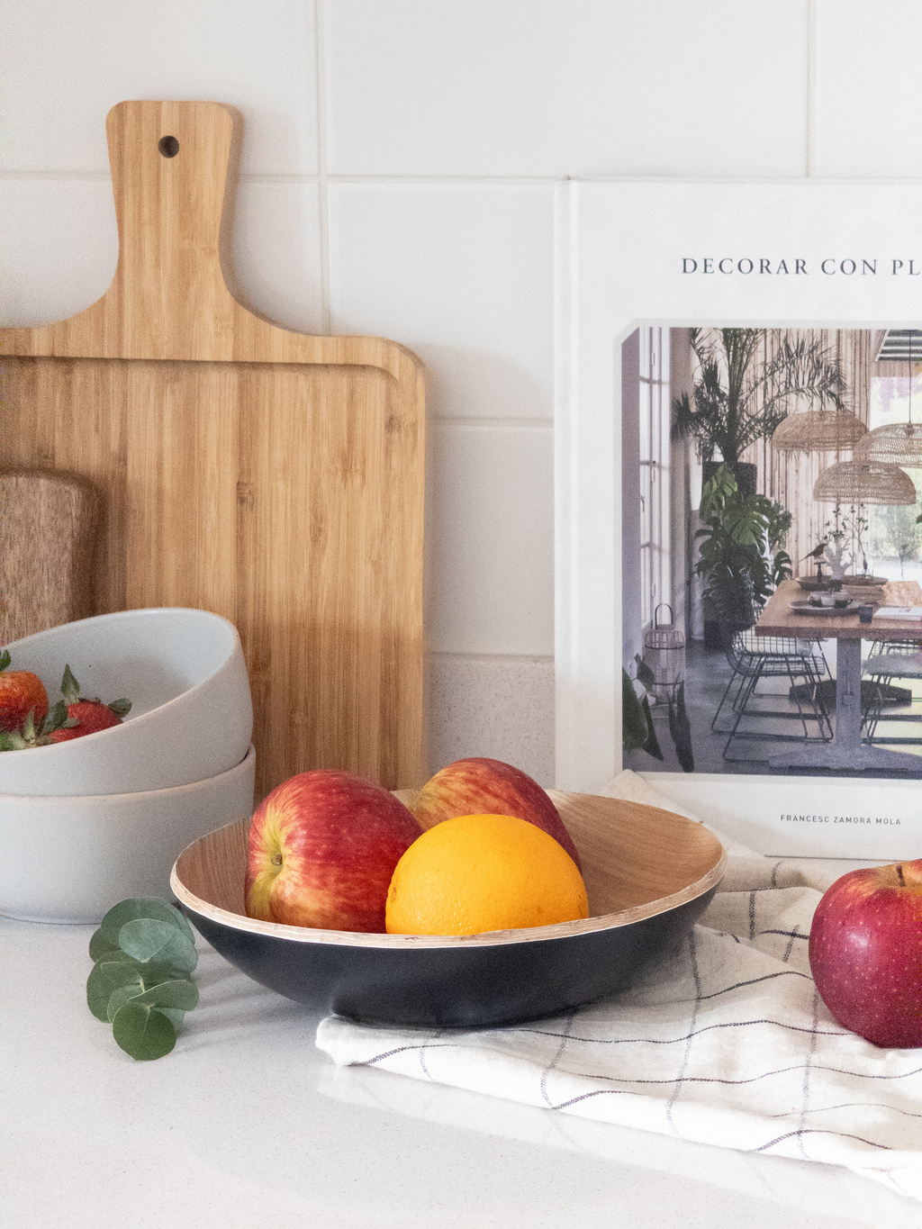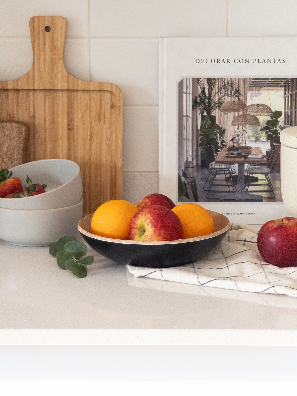 Sus medidas aproximadas de 22x22 cm lo hacen ideal para servir ensaladas, frutas o cualquier tipo de alimento con estilo. Fabricado en madera de alta calidad con detalles en negro, aporta un toque moderno y natural a tu hogar.