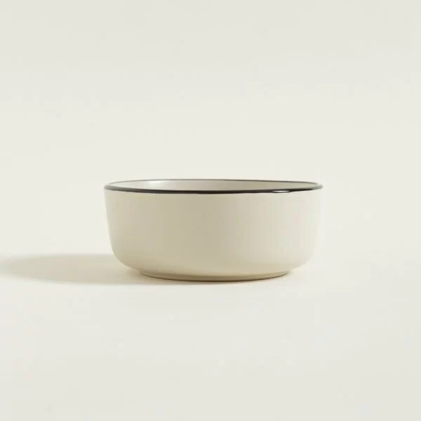 Con un diseño moderno y elegante, este bowl de 18 cm de la línea Ámsterdam se destaca por su borde negro que le da un toque sofisticado. Ideal para servir ensaladas, sopas o guarniciones, es una pieza versátil para el uso diario o presentaciones especiales. Apto para microondas y lavavajillas.