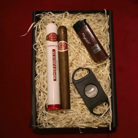 Armamos esta box pensando especialmente en los padres que más disfrutan de los destilados y están buscando el acompañante perfecto.El Romeo N1 viene envuelto en una lámina de cedro dentro de un tubo de aluminio para su mejor conservación y añejamiento, logrando unapresentación muy prolija y buscada. Su fortaleza media y aroma equilibrado hacen de esta vitola una gran compañía para maridajes.Esta presentación incluye un Romeo N1, un encendedor catalítico Magiclick y un cortador Faro recto de plástico.Vitola de Galera: CremasMedidas: Cepo 40 - Longitud 140mmTerreno de sabor: MedioAccesorios sujetos a disponibilidad. En caso de no haber stock se reemplazarán por otros de igual o mejor calidad.
