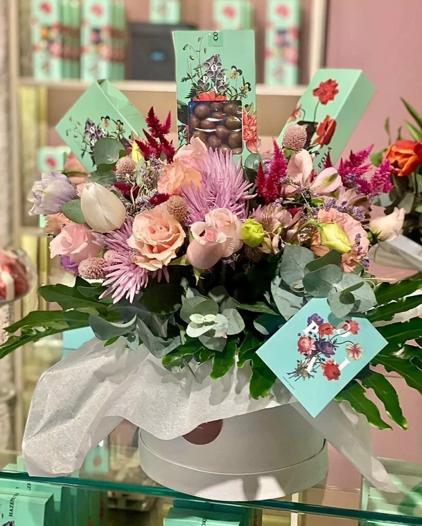 - 3 cajas de bombones de chocolates o chocolates rellenos- 1 Ramo de flores de estación (consultar por disponibilidad)Incluye la caja