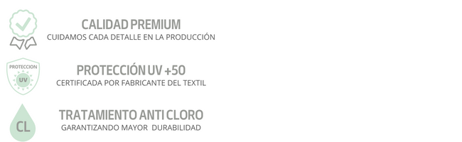 Textil de primera calidad con tratamiento anti cloro.