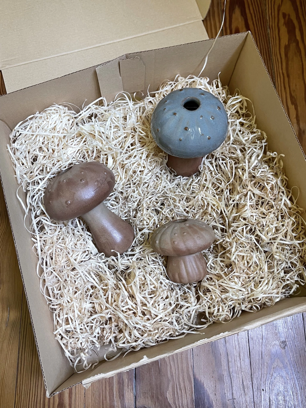 Incluye dos hongos grandes y uno chico. Colores a elección.