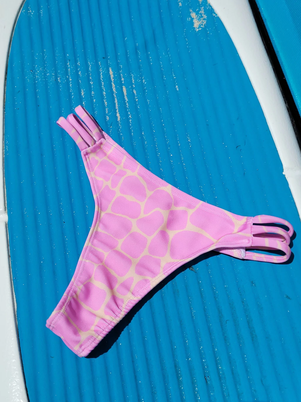 Braga toda forrada en muselina, terminación con elaaticos embutido.Detalle de tres tiras tubulares en laterales. Calce colaless.