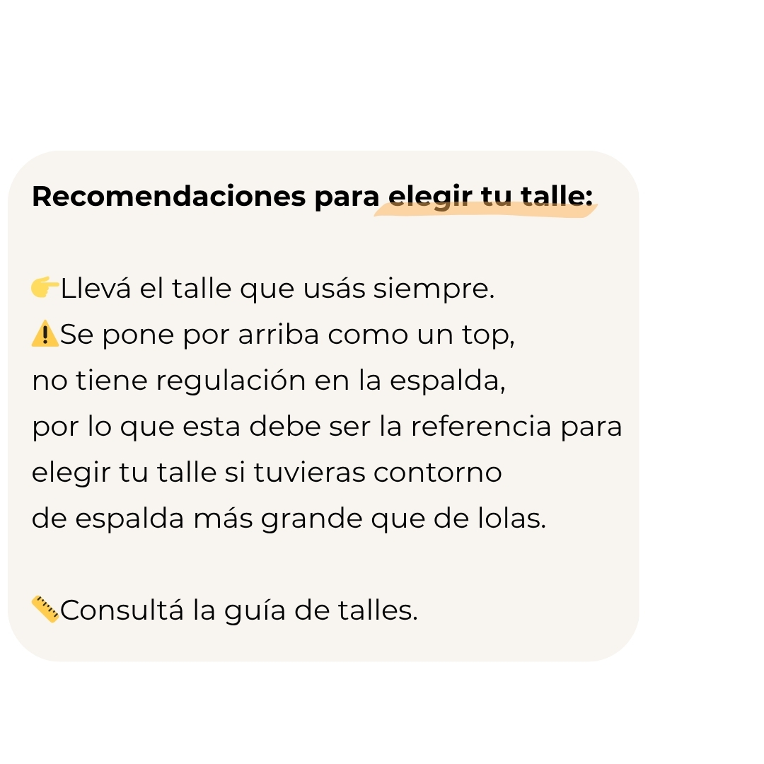 Si tenés alguna inquietud no dudes en contactar por whatsapp, podés enviarme la medida de espalda de algún modelo que tengas y que te queda bien, junto con tus medidas corporales para ayudarte a definir el talle.