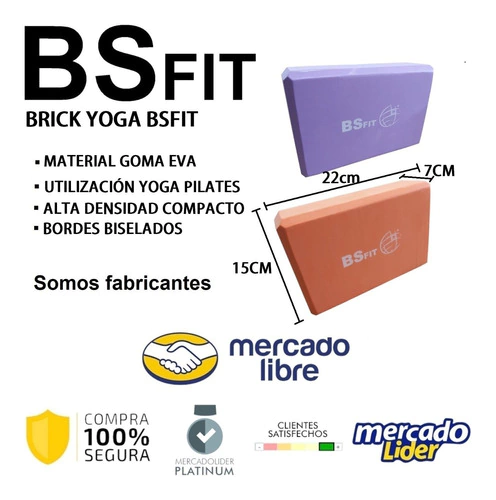Bloque de yoga BSfit, ideal para acompañar tus ejercicios de elongación, equilibrio y meditación. Fabricado en goma EVA de alta densidad, brinda firmeza y comodidad para practicar yoga, pilates o estiramientos. Su tamaño y peso permiten trasladarlo fácilmente.