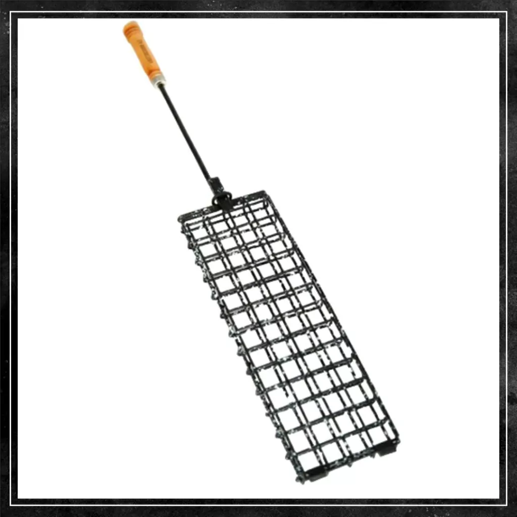 Brochetera XL para parrilla enlozada. Producto de hierro con cabo de madera, con un proceso de revestimiento que le otorga alta resistencia y mayor durabilidad.