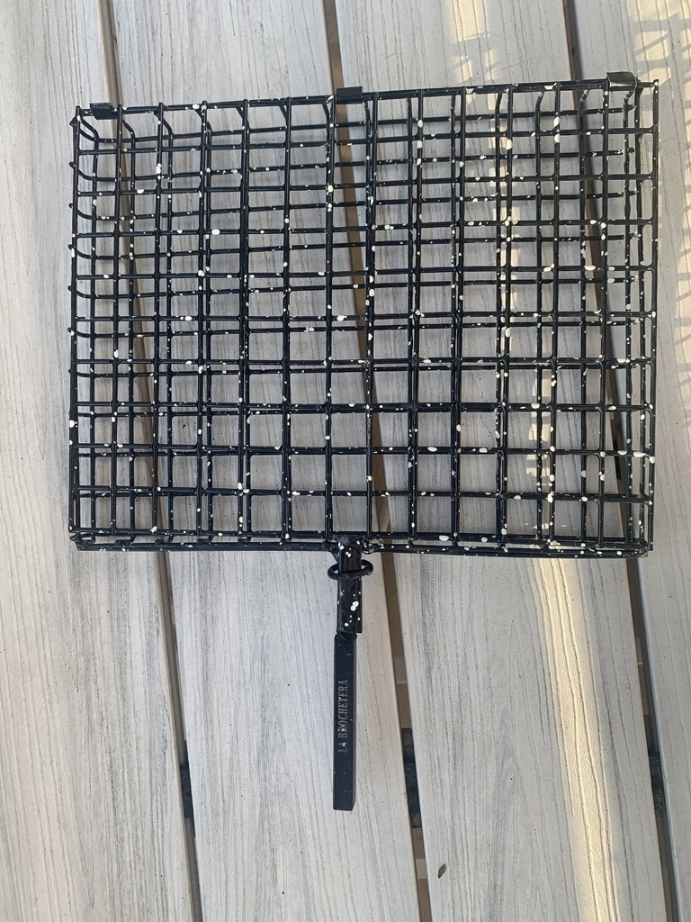 LARGO CANASTO 27 CM, ANCHO CANASTO 33 CM. LARGO TOTAL (CON CABO DE ACERO MACISO) 42 CM, ALTO 3 CM