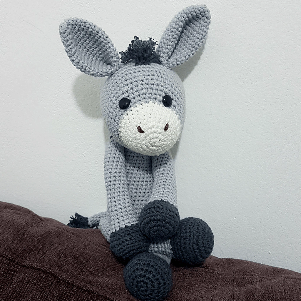 Burro tejido al crochet con hilo de algodon relleno con vellon siliconado. Amigurumi burrito, muñeco de apego para bebes.