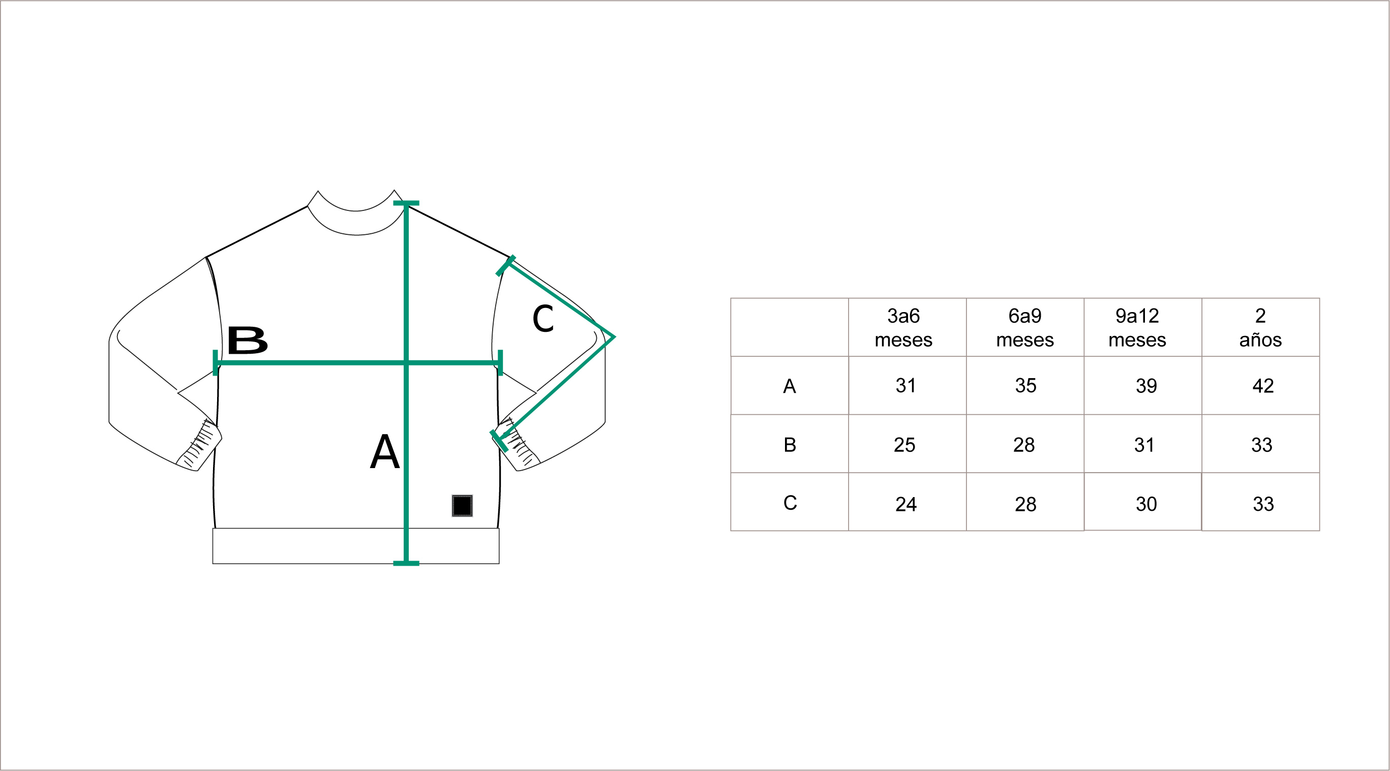 Recomendamos comparar estas medidas con una prenda similar que le quede bien al niño para una compra segura.