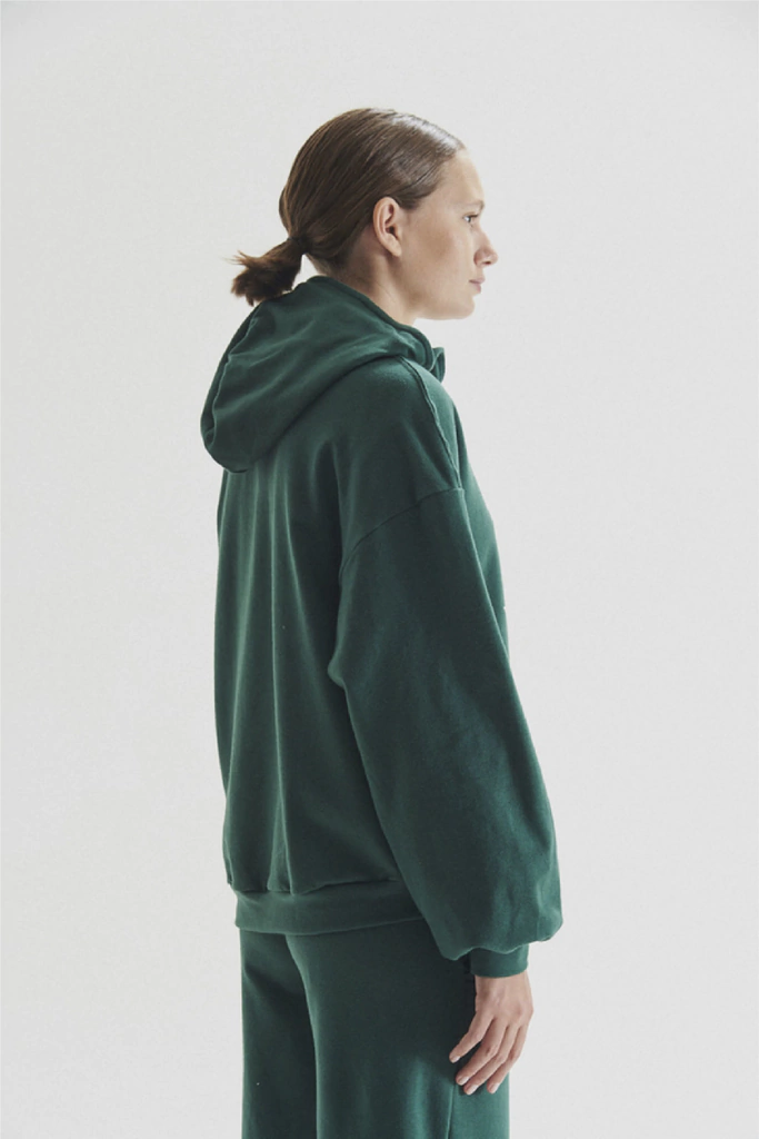Buzo cozy de algodón rústico con capucha ajustable y cordón. Manga larga acabada con puño. Detalle de estampación phrases.