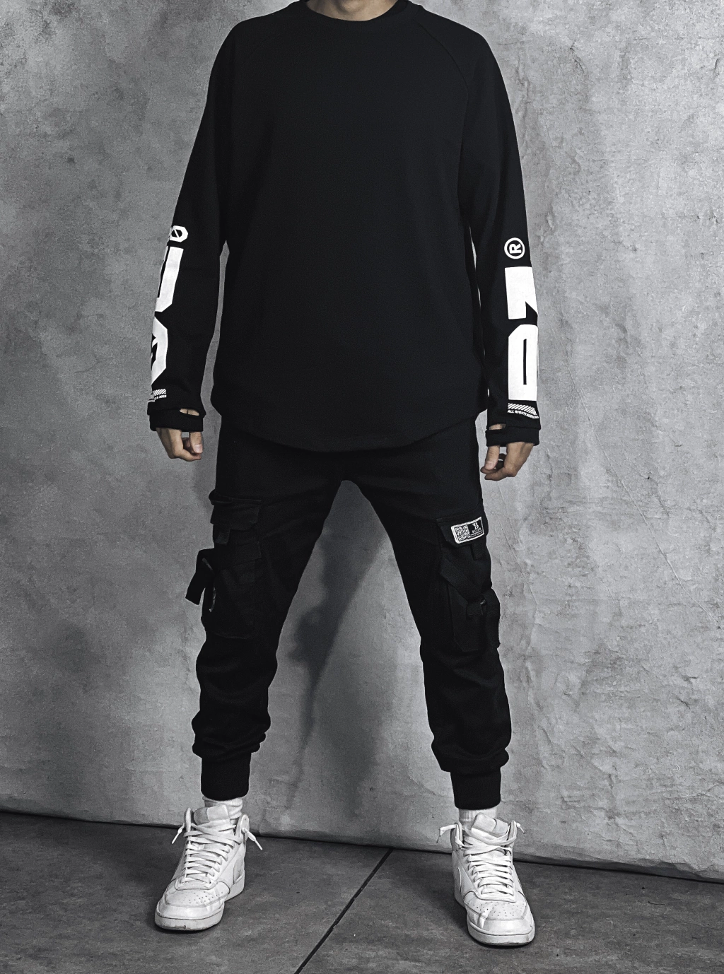 Buzo con estampa estilo Teachwear. Diseño exclusivo.Corte Curvo, largo, diseño exclusivo con agujero en las muñecas para meter dedo pulgar.Producto de 2da selección . Los motivos de las prendas de 2da Selección pueden ser:- La tela podría no alcanzar los entandares de calidad que pretende la marca.- La tela color negra podria desteñir, no mezclar con telas de otro color.- Tela de color white podria tener algunos detalles, por ejemplo manchitas pequeñas.