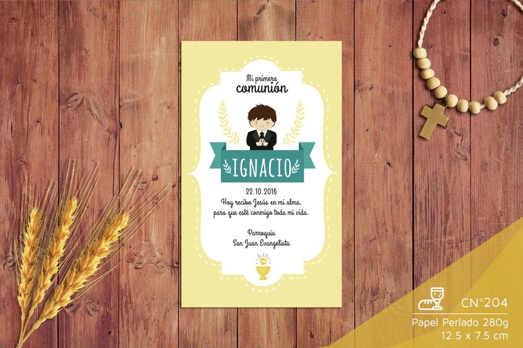 Estampas de Comunión Modelo C 204Pack x 30 unidadesFormato: 7.5 x 12.5 cmPapel Perlado 280gImpresion Color*El precio incluye personalización de texto.