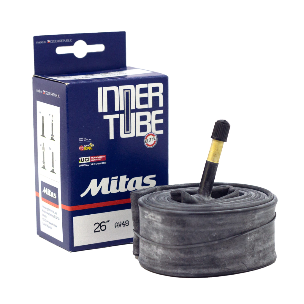 Una cámara resistente e ideal para todo uso en cubiertas por encima de 1.5"Con el standard de válvula Schrader (Auto)Características del Producto:- Rodado 26"- Para Cubiertas 1.5” – 2.1”- Pico Auto (Schrader)- Material: Butilo- Largo Válvula: 40 mm- Peso Real: 171 gr- Muy liviana y resistente- Hecho en República ChecaMitas es una marca checa de todo tipo de cubiertas (agrícolas, industriales, de motocicletas y bicicletas). La historia de Mitas se remonta a la década de 1930, cuando comenzó la producción en Praga, la capital de Checoslovaquia, y en la ciudad de Zaven, en Moravia.Hoy en día las Mitas se venden a través de una extensa red internacional de ventas y distribución que opera en 14 países, incluidos los Estados Unidos y México.