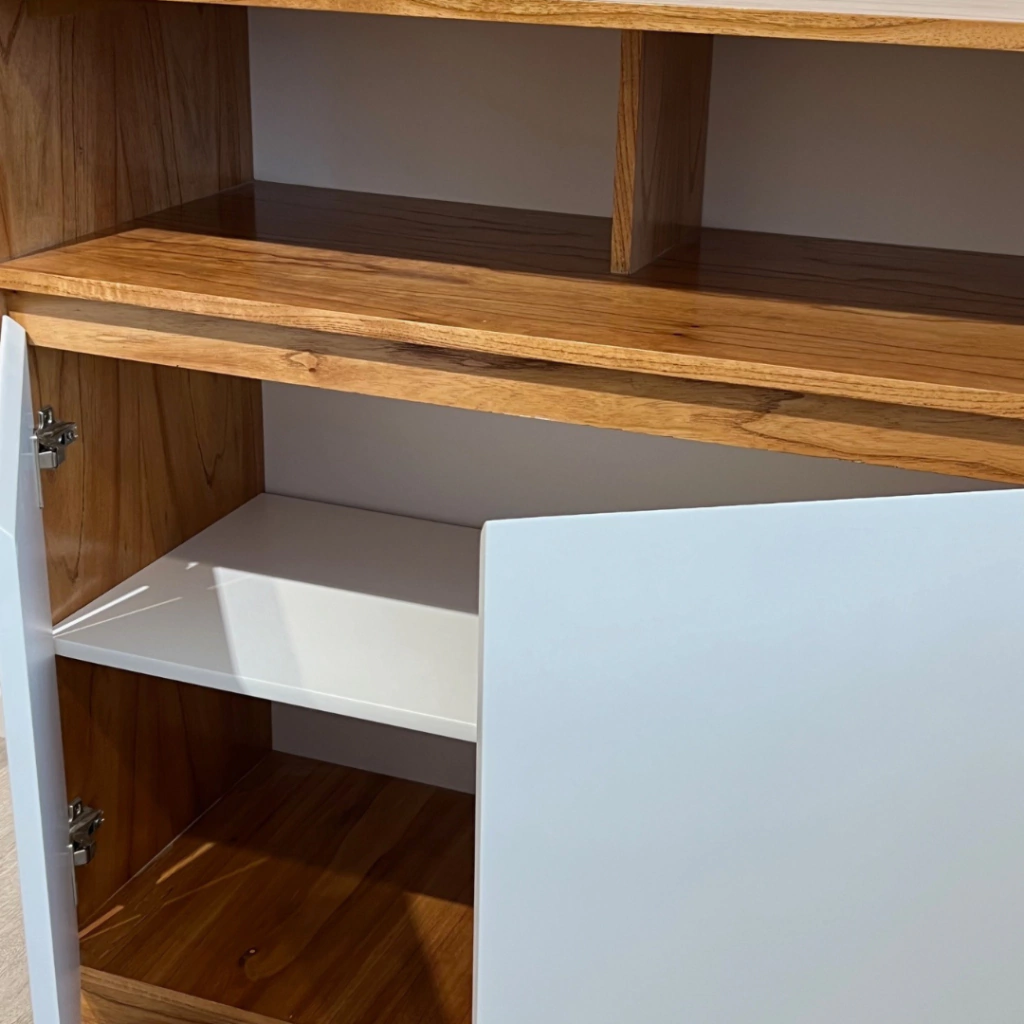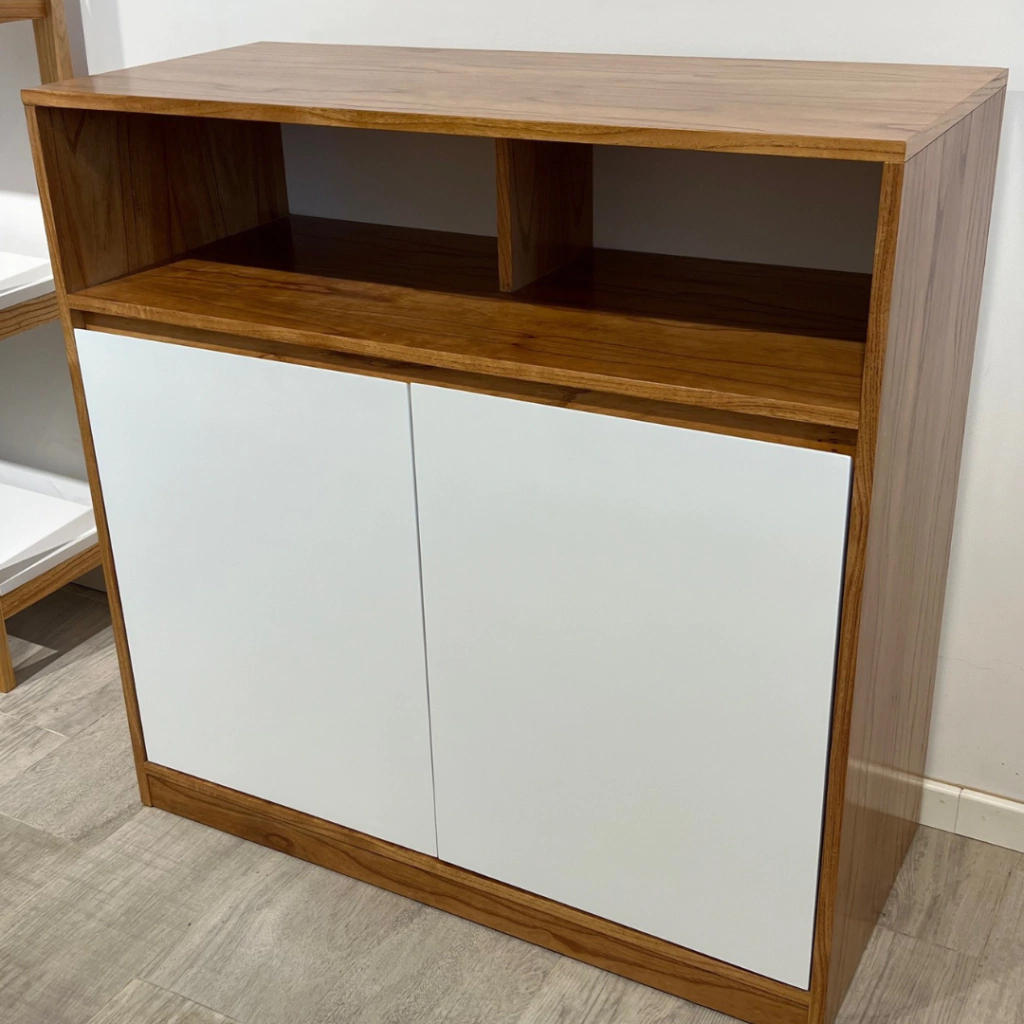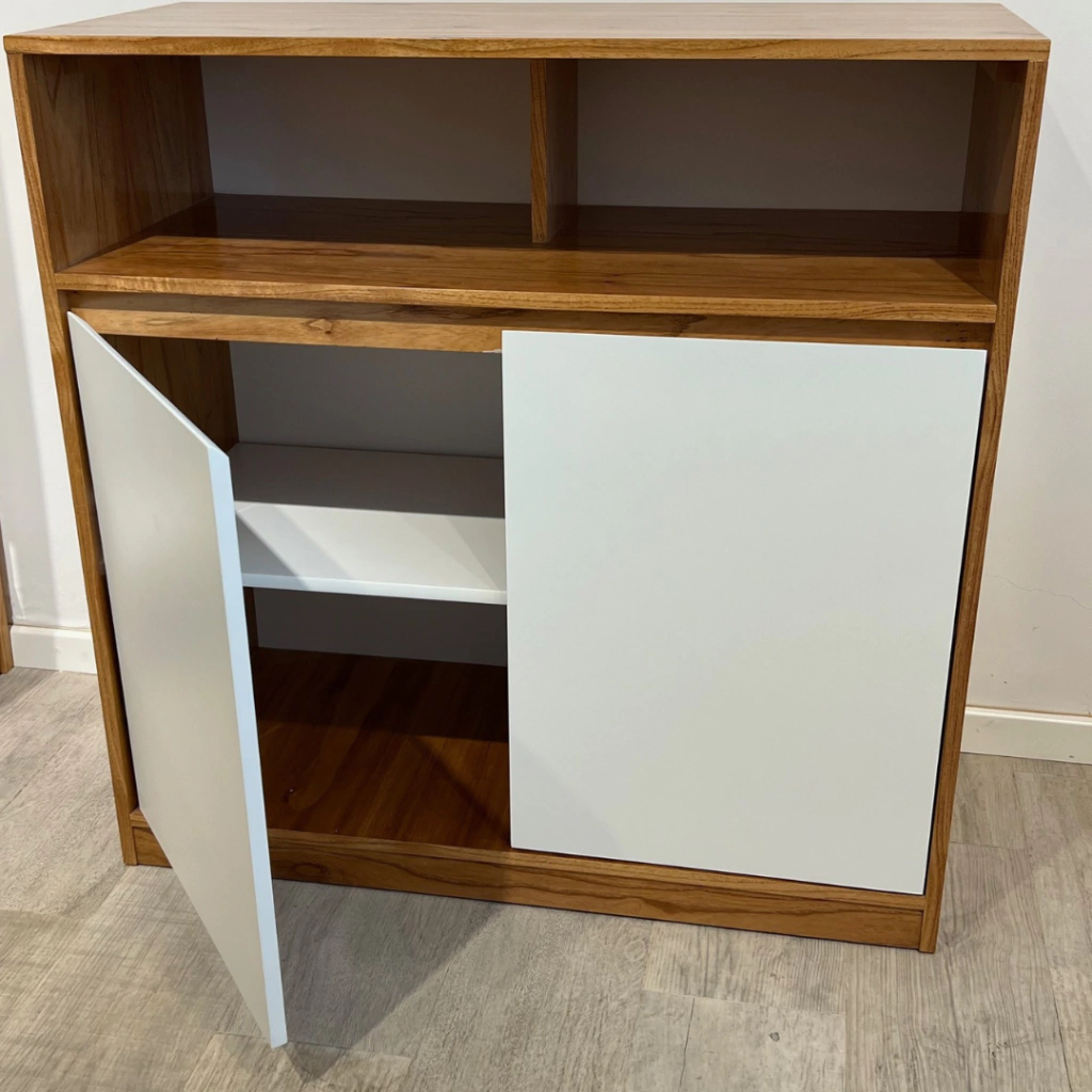 Cómoda Nórdica BlancaEstructura de paraíso.Estantes y puertas laqueados en BlancoMedidas: Largo 90cm. - Profundidad 40cm. - Alto 90cm.
