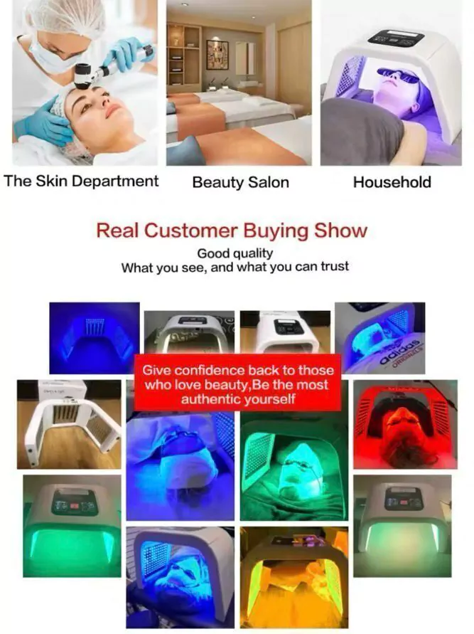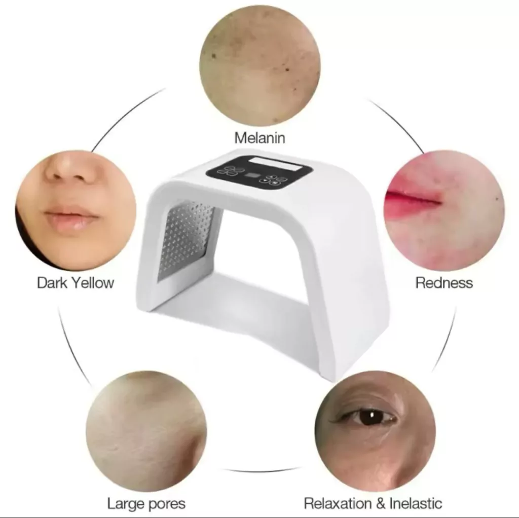 Característica: irradiado por diferentes fuentes de luz de color, tiene diferentes efectos en el cuidado y reparación de la piel; Control inteligente, operación simple y desmontable.