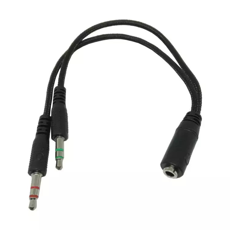 Este Cable Adaptador permite conectar Auriculares de PS4, Earphones Manos Libres de Celulares o Tablets con conector TRRS (Audio/Mic.) a una PC o Notebook con Salidas de Audio/Mic separadas.Los 2 conectores miniplug macho estan señalizados por los colores correspondientes a la salida que pertenecen (Audio/Verde - Mic./Rosa).Permite usar tus Auriculares de Consolas Gamer y los Earphones de tu Celular en cualquier PC o Notebook.- 1 Conector de Entrada miniplug hembra 3.5 mm- 1 Conector de Salida miniplug macho 3.5 mm para Audio (señalizado con color Verde)- 1 Conector de Salida miniplug macho 3.5 mm para Mic. (señalizado con color Rosa)- Longitud del cable: 18 cm.