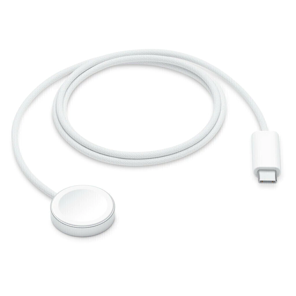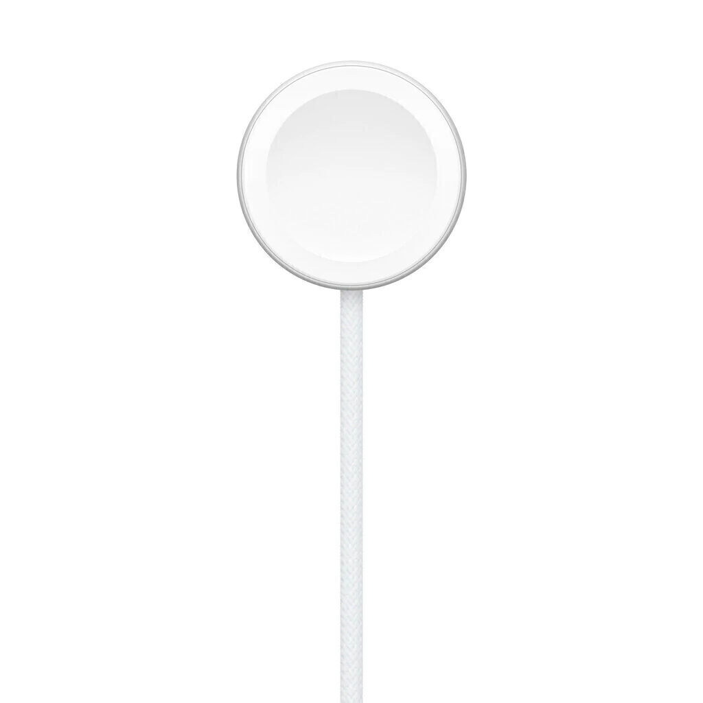 Queríamos que la carga de su Apple Watch fuera completamente sencilla. Así que llegamos a una solución que combina nuestra tecnología MagSafe con la carga inductiva. Es un sistema completamente sellado sin contactos expuestos. Y es muy indulgente, no requiere una alineación precisa. Simplemente sostenga el conector cerca de la parte posterior del reloj, donde los imanes hacen que encaje en su lugar automáticamente.