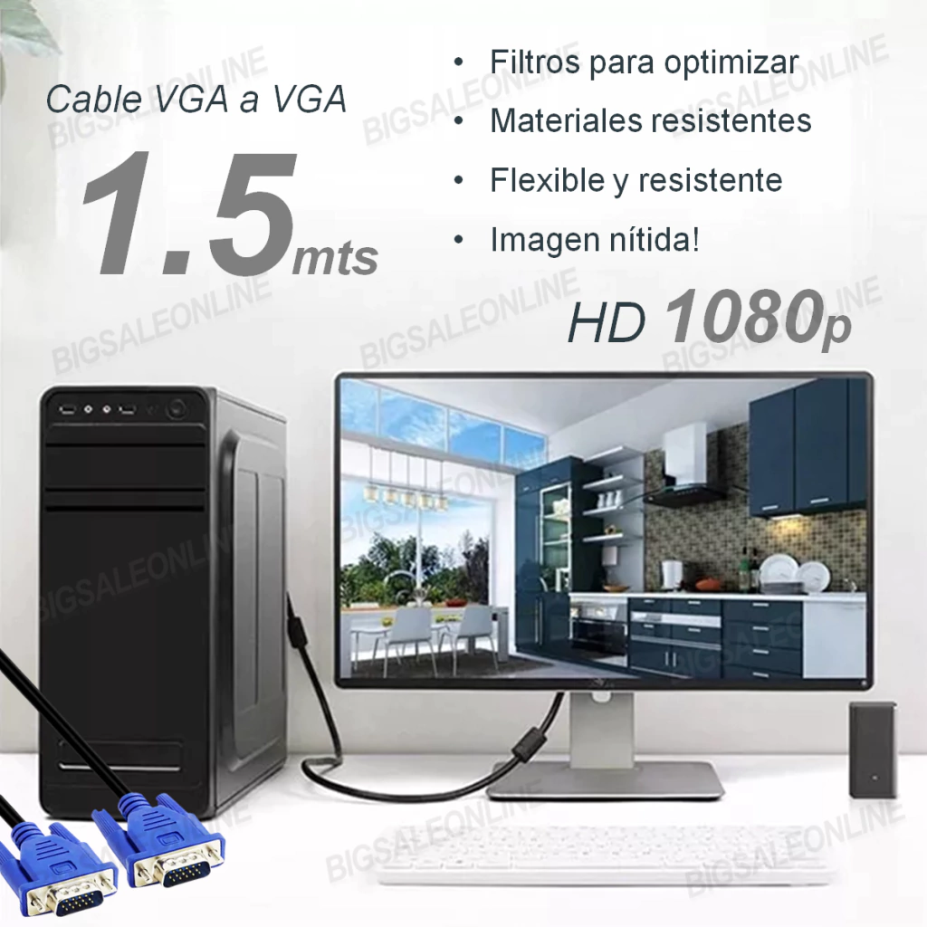 - Excelente Cable VGA ideal para proyectar de forma nítida y sin interferencias de PC o Notebook a Proyectores, Monitores o TV con estas entradas