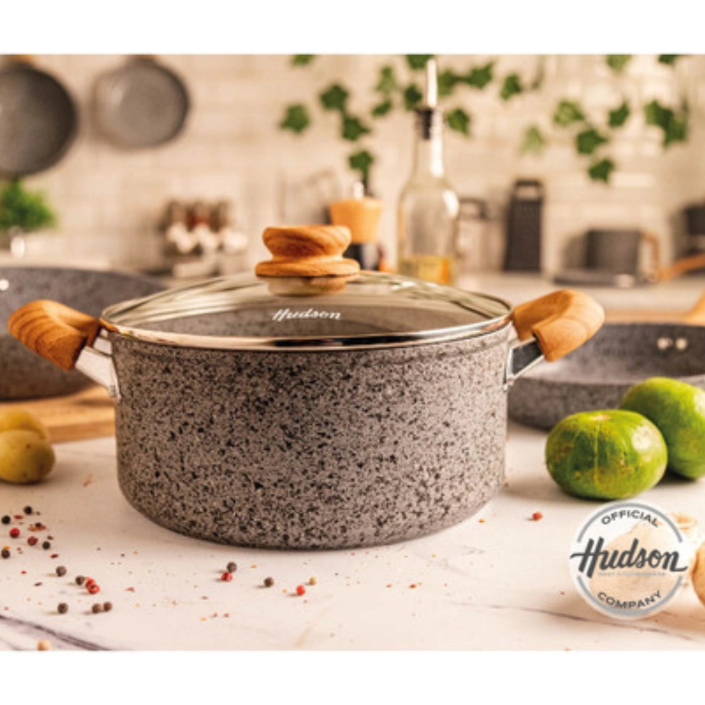 Cacerola Hudson Granito Stone Aluminio Forjado 24cm con tapa de cristal.