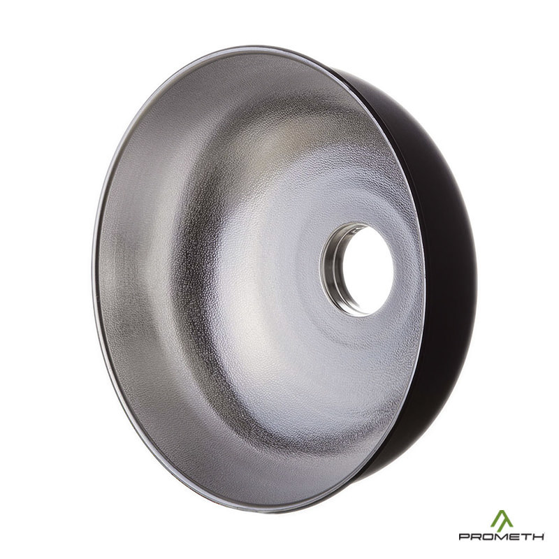 Cacerola Flash de estudio Prometh – 43cmMontura Prometh / BowensPeso0.8 kgDimensiones43 × 43 × 15 cm