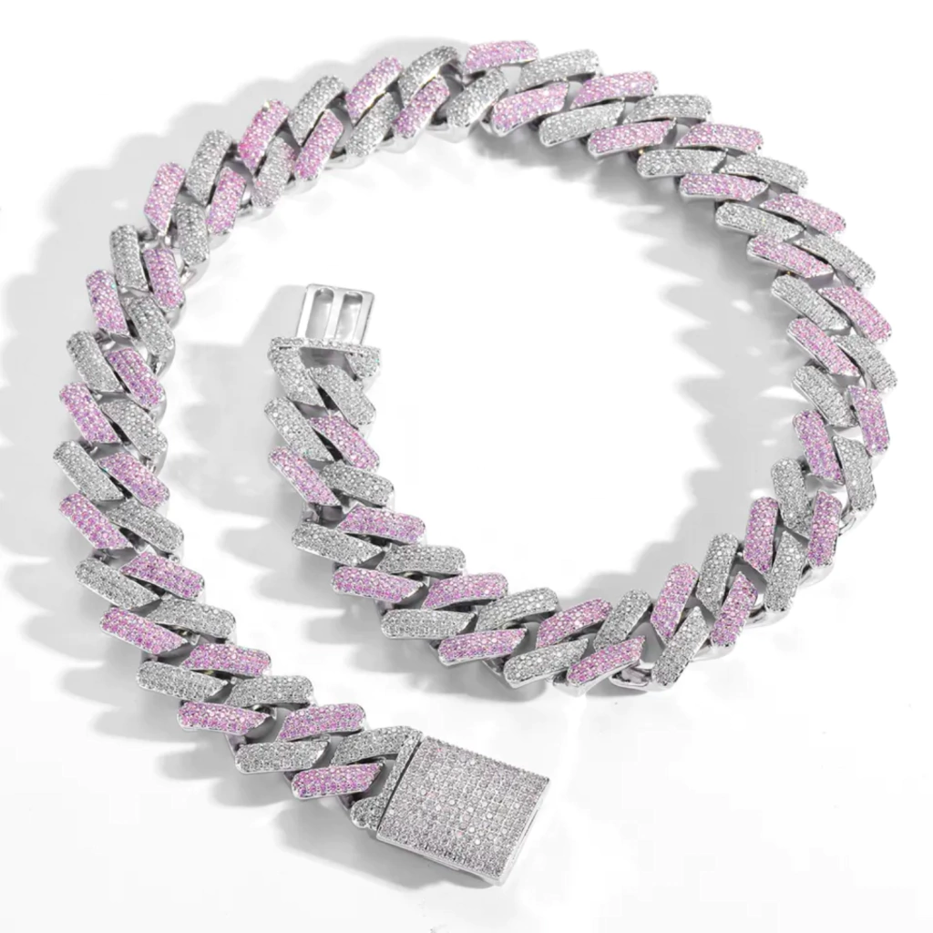 Cadena Cubana SIRA Baño de Oro Blanco 14K Bicolor Zirconias - Mod 29 - 18 Inch - (250 USD)