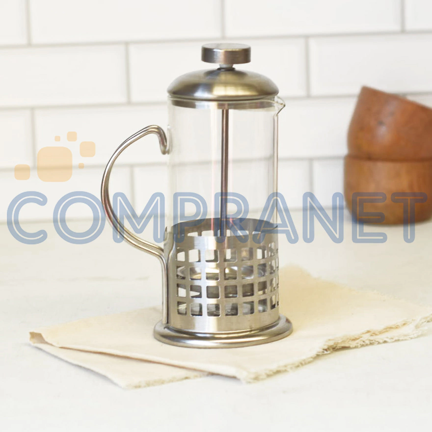 Cafetera con embolo, tipo francés. La prensa francesa conserva los aceites naturales que los filtros absorben, lo que te permitirá degustar un café de consistencia espesa y deliciosa.De estilo elegante y moderno, el acero inoxidable se convierte en una ventaja que podes aprovechar para mantener tu cafetera siempre limpia y reluciente.Material: Vidrio resistente al calor y acero inoxidable.Capacidad: 600 mlCapacidad para 4 pocillos de café.Apto para lavavajillas, no apto para horno ni microondas. Fácil de lavar.En caja.Medidas: 10,5 cm (diámetro) x 22 cm (alto)