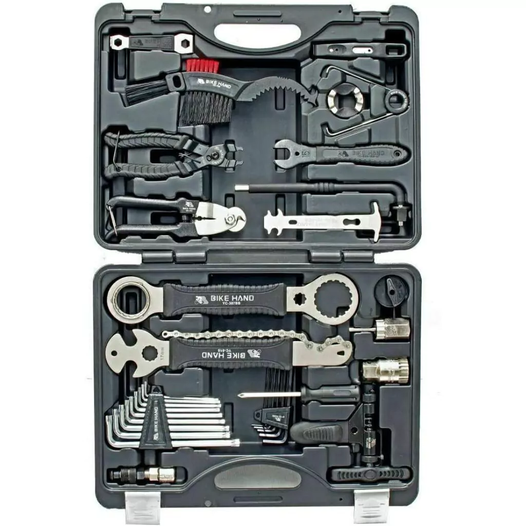 Caja de herramientas Bicicleta Bike Hand 23 PiezasBike Hand YC-79923 PiezasContiene:Llave chainring nut (YC-271)Sepillos p limpieza de cadena (YC-790)Pinza p/ abrir y colocar master link ( YC-335CO)Alicate-Corta cable Profesional ( YC-767 )Set saca cubiertas (YC-305D)Estira rayos 3.2/3.3/3.5/4.0mm (YC-8F)Arrimador de cadena (YC-207)Llave coloca/ saca pedal (YC-658-15S-4T)Allem 8mm / square adaptor (YC-812LE)Indicador de desgaste de cadena (YC-503)Llave doble de 15mm con sostenedor de piñon (YC-515)Extractor de caja Hollowtech II BB, BB-9000, BBR60 (YC-307BB)LlavesT10/T15/T20/T25/T27/T30/T40/T45/T50 wrench (YC-633-CP)Extractor de palancas (YC-215CB)Llave p/ Hollowtech II (YC-27)Extractor de piñón a cassette (YC-126-1A)Extractor de caja (YC-26BB-1A)Cortacadena Profesional ( YC-324sc )Destornilladores plano y Phillips (YC-611)Llaves Allem 2/2.5/3/4/5/6mm (YC-613)