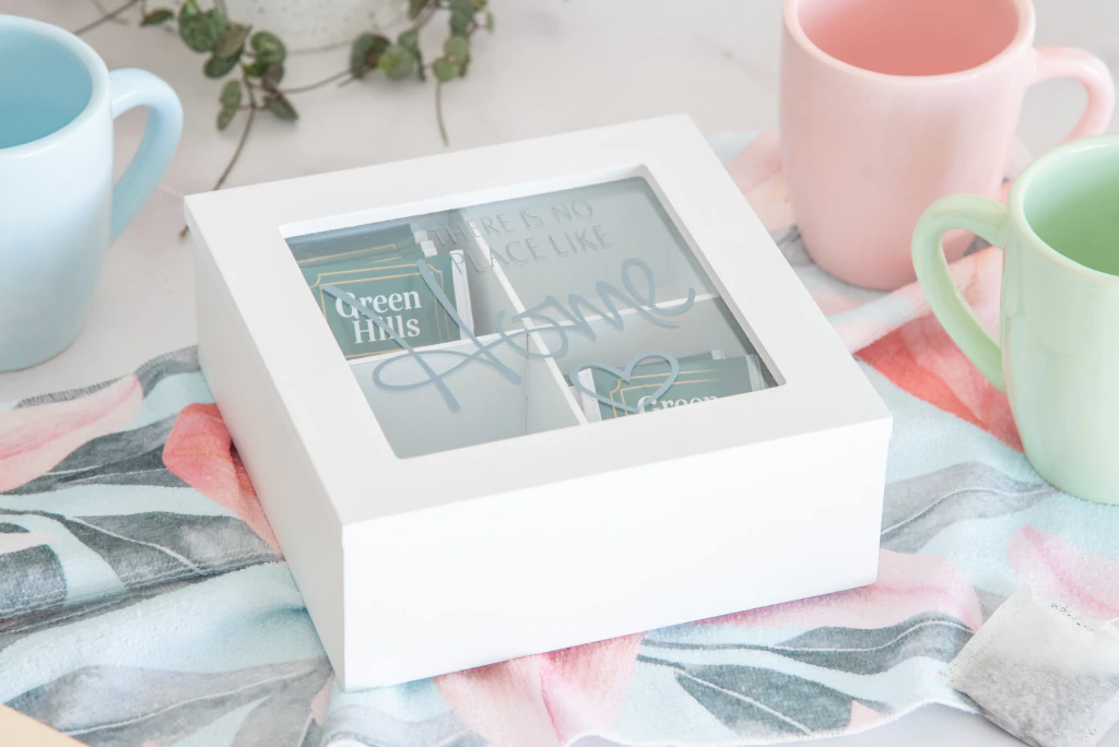 Caja De Té De Madera Blanca Con 4 Divisiones 18x18x7cm