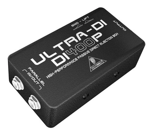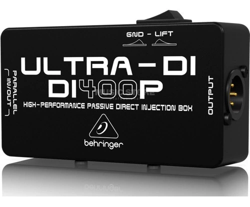 El ULTRA-DI DI400P es una caja DI (inyección directa) pasiva para conectar una guitarra, bajo o teclado directamente a su mezclador, Con el DI400P como su intermediario, los problemas de coincidencia de impedancia se han convertido en cosa del pasado, y los cables largos no sacrificarán todo su precioso tono,
