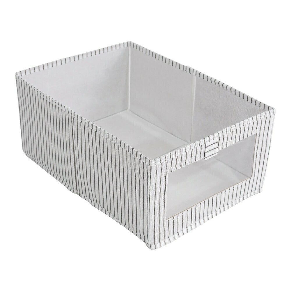 Caja Forrada Plegable para Ropa Brest Strips GreyCaja de cartón forrada en tela de color gris y blanco con ventana.Te ayudará a mantener el orden y la decoracion en diferentes ambientes. Ideal para distintos tipos de objetos.Características:- Color: gris y blanco.- Material: Cartón y tela de algodón.- Medidas: 40 cm x 27 cm x 17 cm.