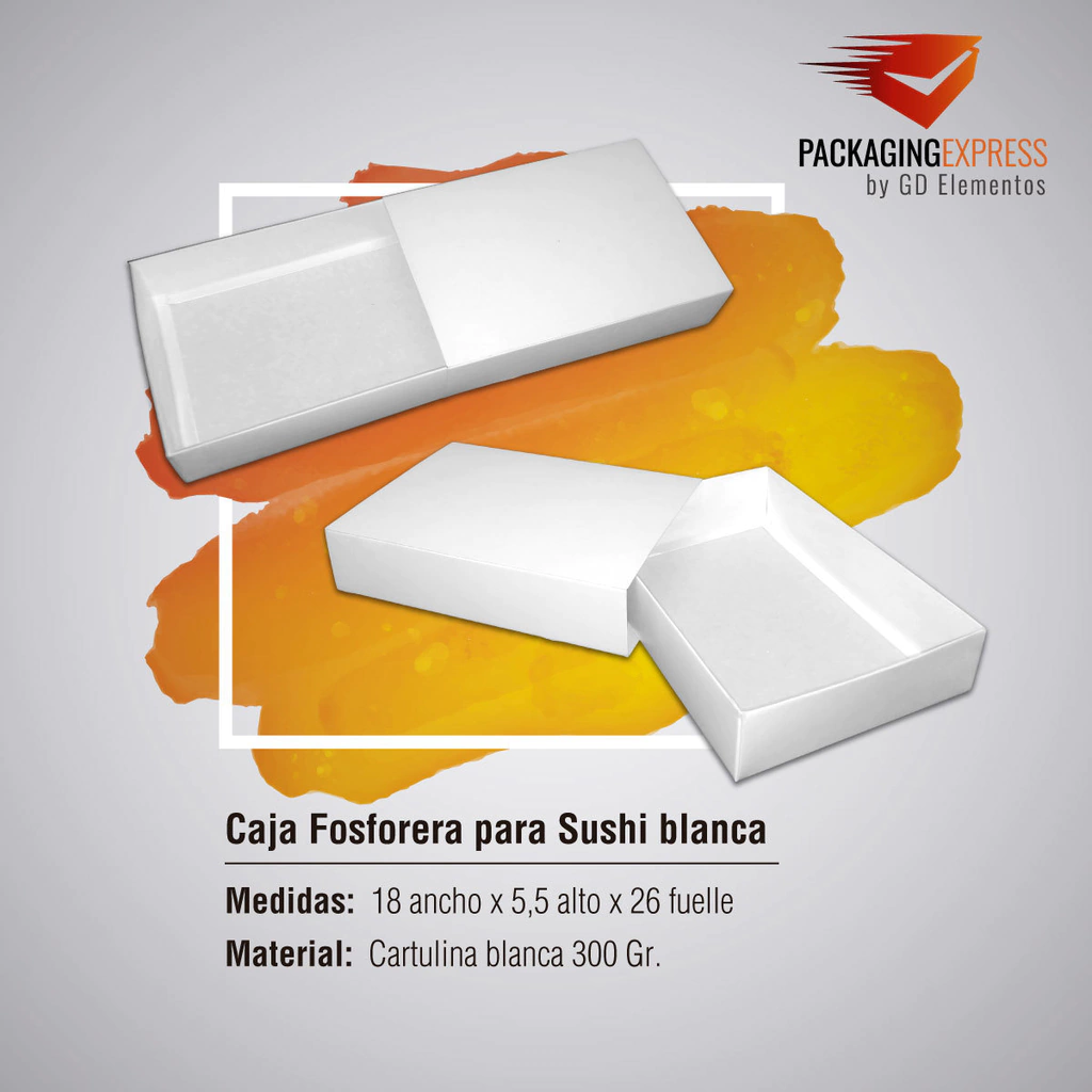 Caja Tipo Fosforera para Sushi (20 piezas aprox.) Delicatessen Pared Doble. Cartulina Blanca