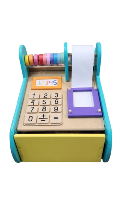 ** Accesibble Juguetes **Caja Registradora De Madera Con Rollo De PapelMide 25cm De Ancho, 22cm De Largo Y 24cm De Alto.Unico Color