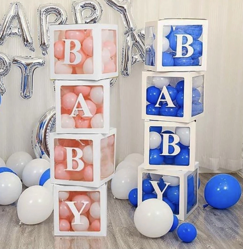 Caja transparente para globos de cartón blanco y transparencia de acetato