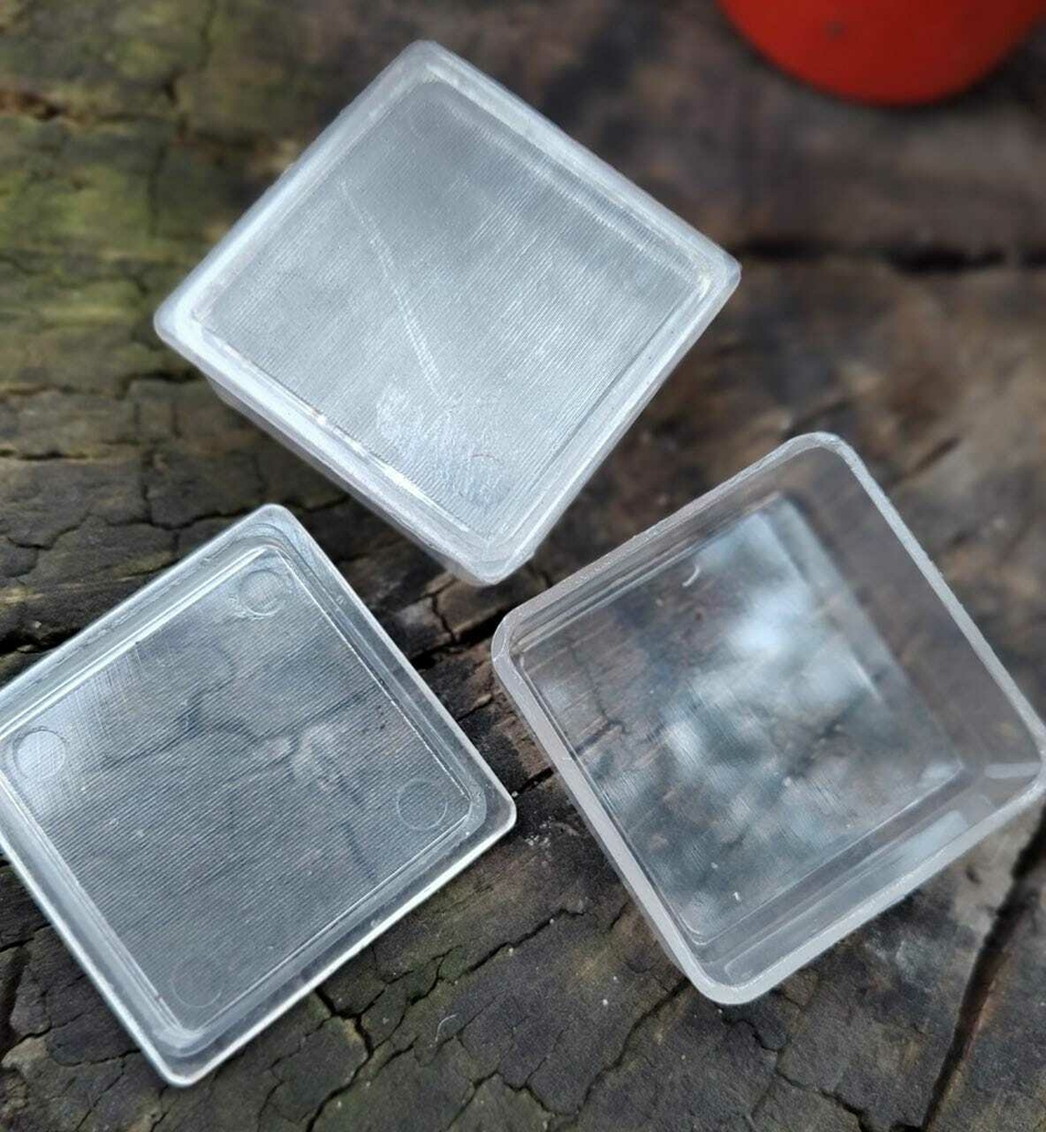 Cada CAJITA MULTIUSO mide 4 CM por 4 CM, cuenta con una tapa hermética. Ideal para poner la reposición de los labiales, para maquillaje, manicuría, etc.