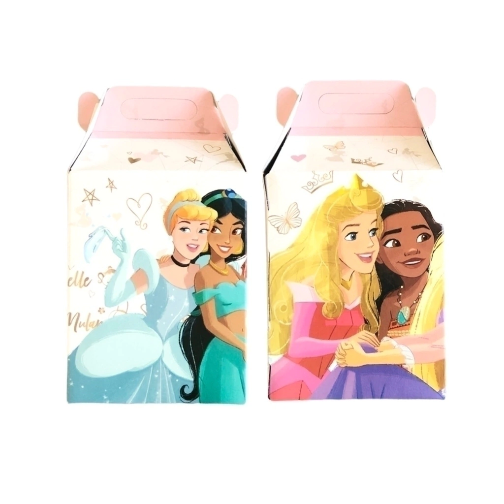 Pack x6 cajitas de carton para armar con estampado de princesas.