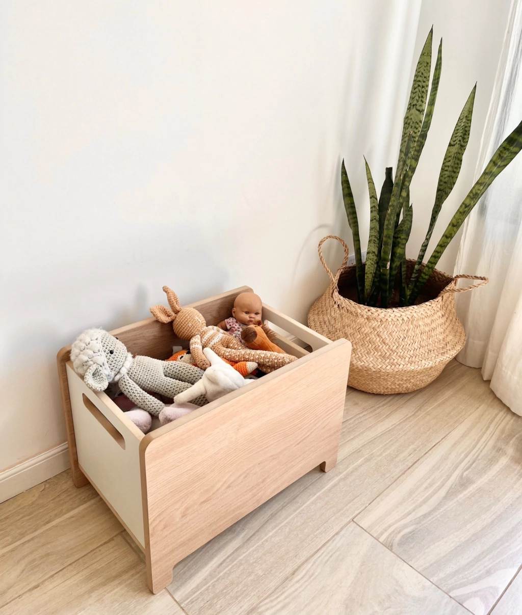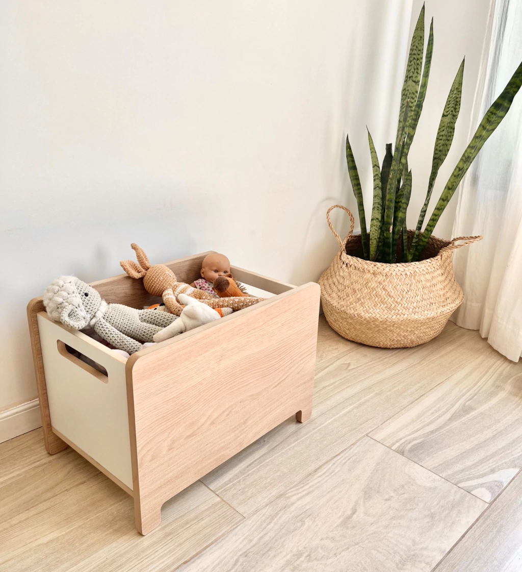 materiales: melamina con vetas simil madera y melamina blanca con bordes redondeados