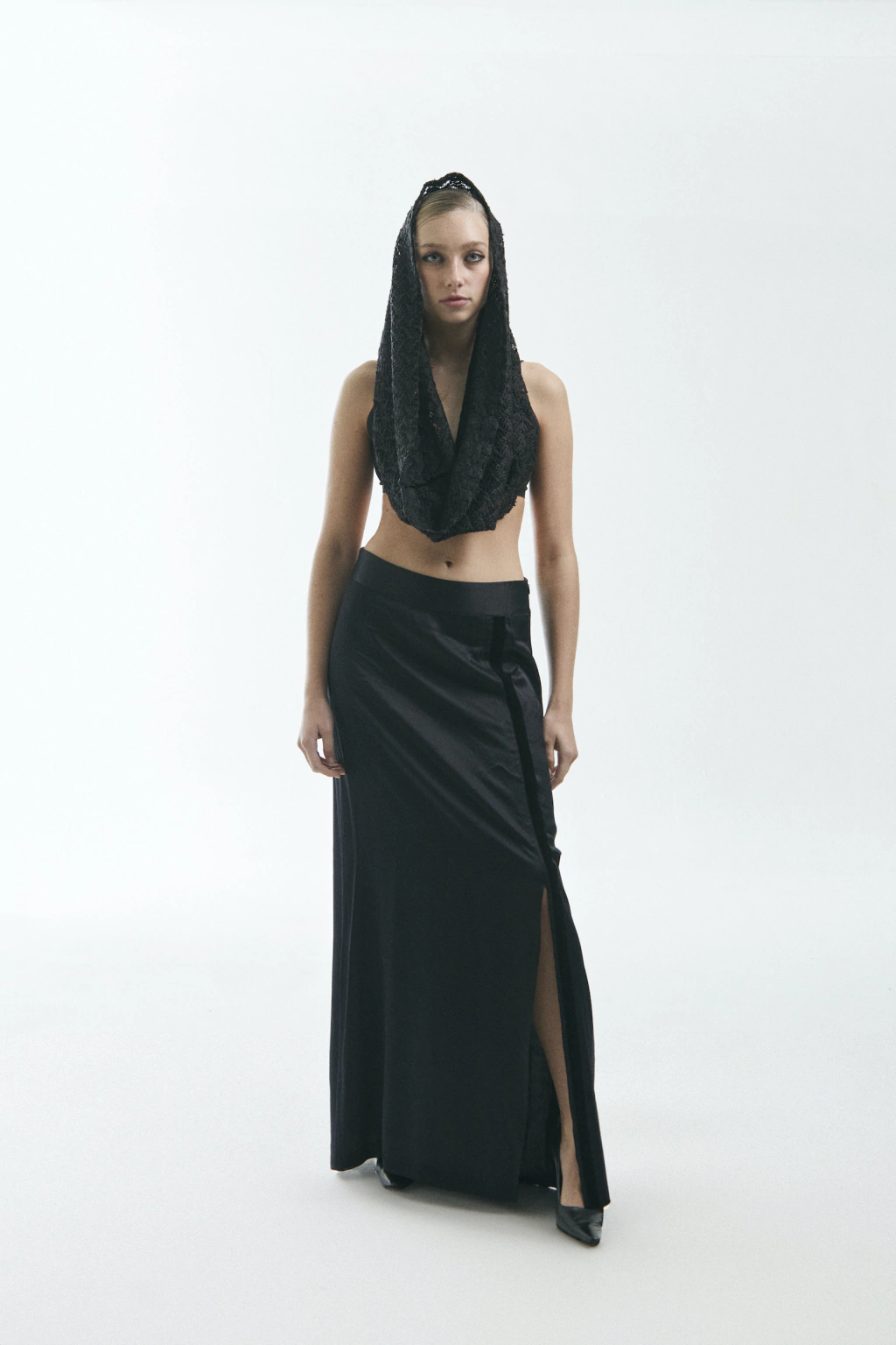 Falda maxi con tajo en una piernanueva sin usotalle 3Marca: Cala - teresa calandramedidas: frente 37,5cm, largo 110cm100% viscosa