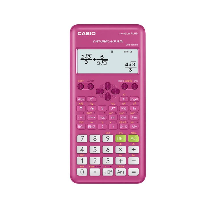 EspecificacionesNon ProgrammableEspañol e Inglés están disponibles.Cantidad de funciones: 252Presentación de libro de texto naturalVisualización de expresiones similar a un libro de texto.Pantalla natural V.P.A.MVisualización de expresiones similar a un libro de texto.AAA × 1 (R03)10 + 2 dígitosVisualización de mantisa de 10 dígitos + exponente de 2 dígitos.Presentación de matriz de puntosPantalla de alta resoluciónFunción de reproducción múltipleLlamada rápida y fácil de las fórmulas ejecutadas previamente para la edición y repetición de ejecución.Teclas plásticasDiseñadas y preparadas para ser de uso fácil.Non GraphingAAA-size BatteryBasic Mathematical FunctionsTrigonometric, Exponential logarithmic, etc.Basic StatisticsStandard statistics functions such as Mean, SUM, Standard Deviation, and RegressionTable GenerationYou can create a numerical table based on that expression by registering a function expression. In addition, graph functions can be represented by graphs.Editor de datos STAT basado en listasEdición y visualización de datos en formato de lista, presentación de grupos de datos (datos x, datos y, frecuencia) y datos circundantes.